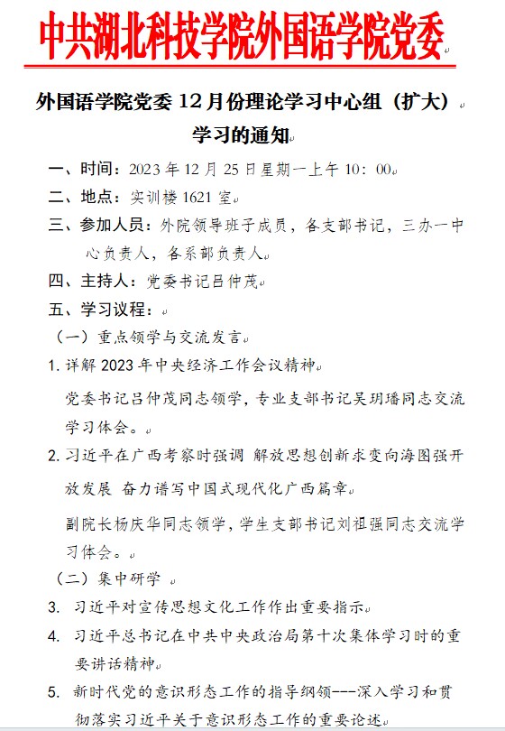 2138cc太阳集团12月份理论学习中心组(扩大)学习的通知