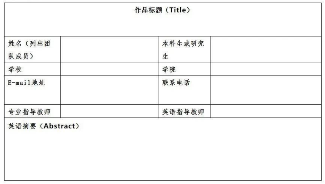 1.大赛作品报名表(附录);2.科研诚信保证书;3.五分钟演讲视频;4.论文摘要(附录);5.演讲稿(附录)。