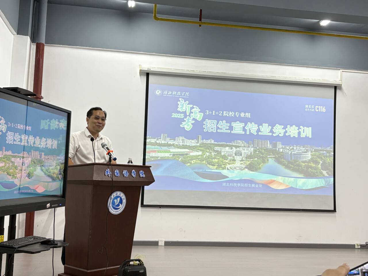 (通讯员:周婧 审稿人:佘翠华)为落实学校招生宣传工作要求,确保2025年学院招生宣传工作更加高效有序,5月15日下午,2138cc太阳集团在学术报告厅召开了招生宣传工作培训会。招生就业处副处长饶彬作招生宣传专题培训,学院领导班子成员、全体教职工参会,培训会由学院副院长杨庆华主持。
