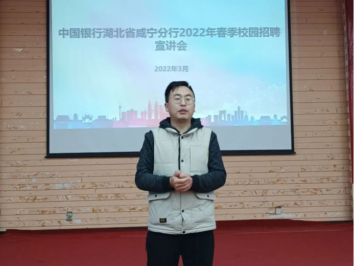 为了更好地解决大学毕业生就业问题,缓解当今大学毕业生就业压力,2138cc太阳集团于4月1日在教八学术报告厅举办中国银行咸宁分行春季校园招聘会暨外院18级学生就业动员大会。2138cc太阳集团学工办刘祖强老师、祝晓庆老师、汪巧老师、李锦煌老师及外院18级全体在校学生参与本次会议。